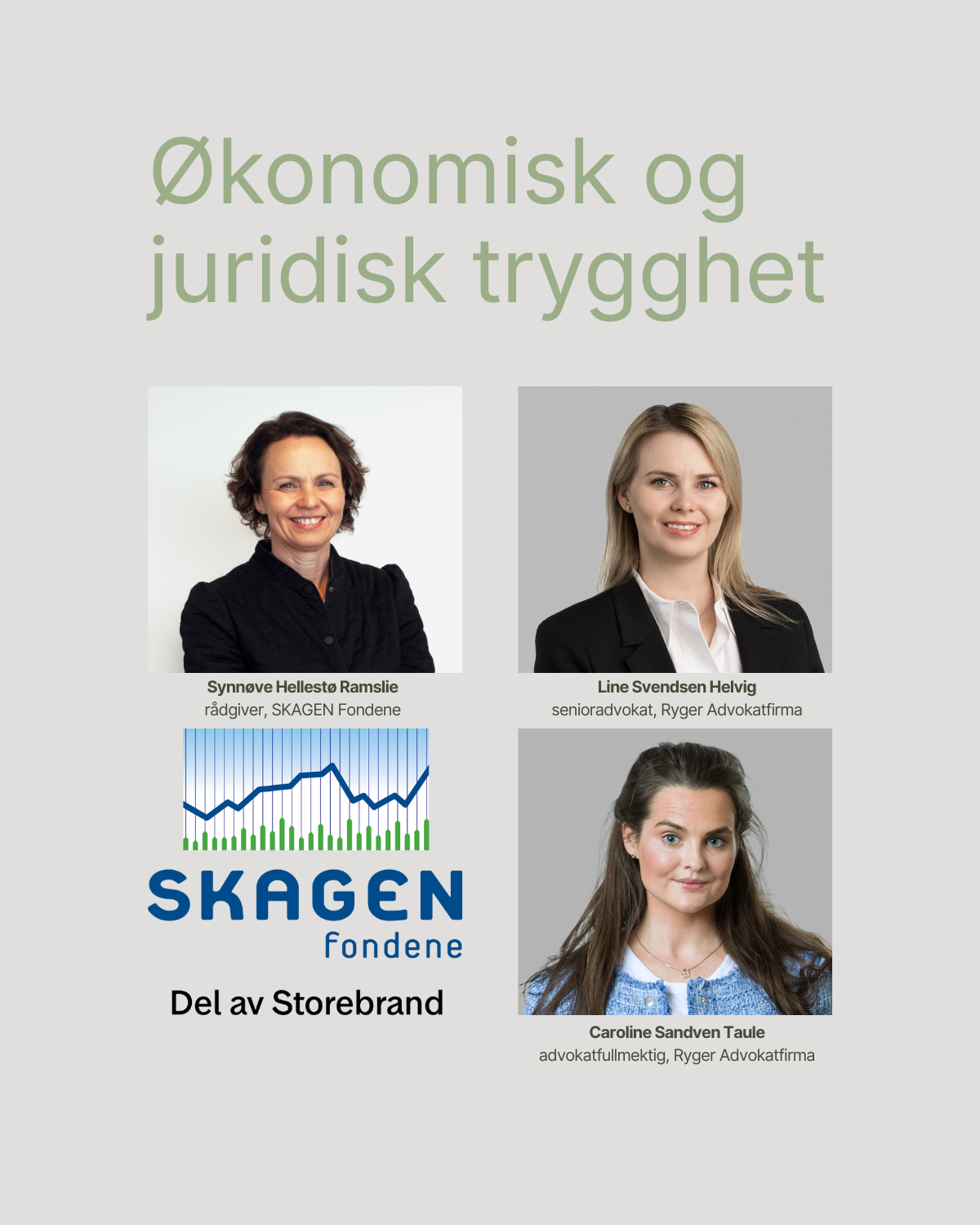 I anledning kvinnedagen inviterer Ryger Advokatfirma og SKAGEN Fondene til frokostseminar i Bergen og Stavanger, med fokus på økonomisk og juridisk trygghet.